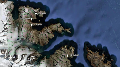 En las costas libres de hielo, especialmente en las islas que emergen en el sur del archipiélago, los musgos y líquenes formando un compacto tapiz verde ponen en el paisaje una nota singular y atractiva que, unida a la presencia de las aves antárticas, principalmente petreles y pingüinos, que acuden en primavera y verano, atempera la sensación de soledad que produce el lugar.